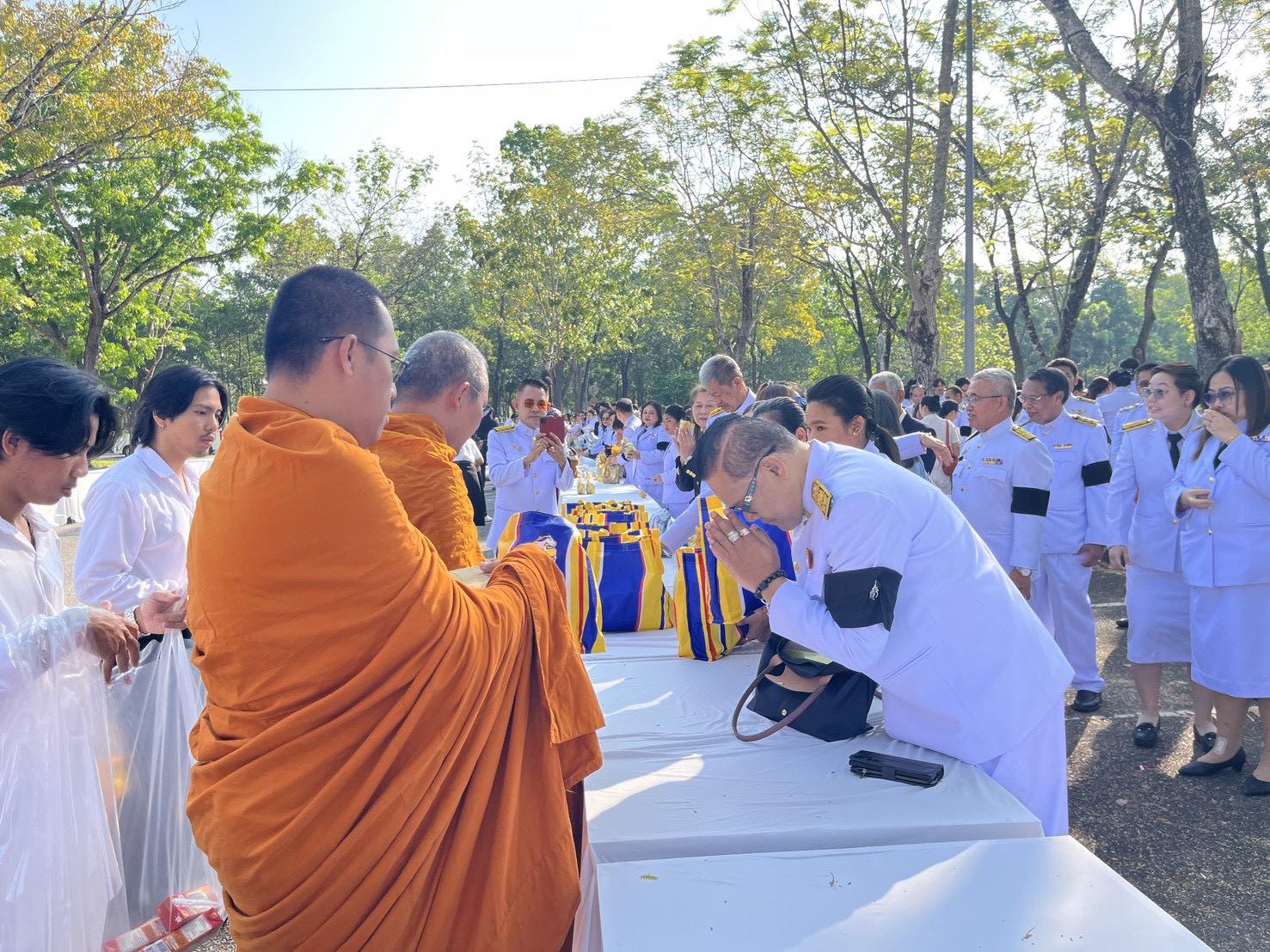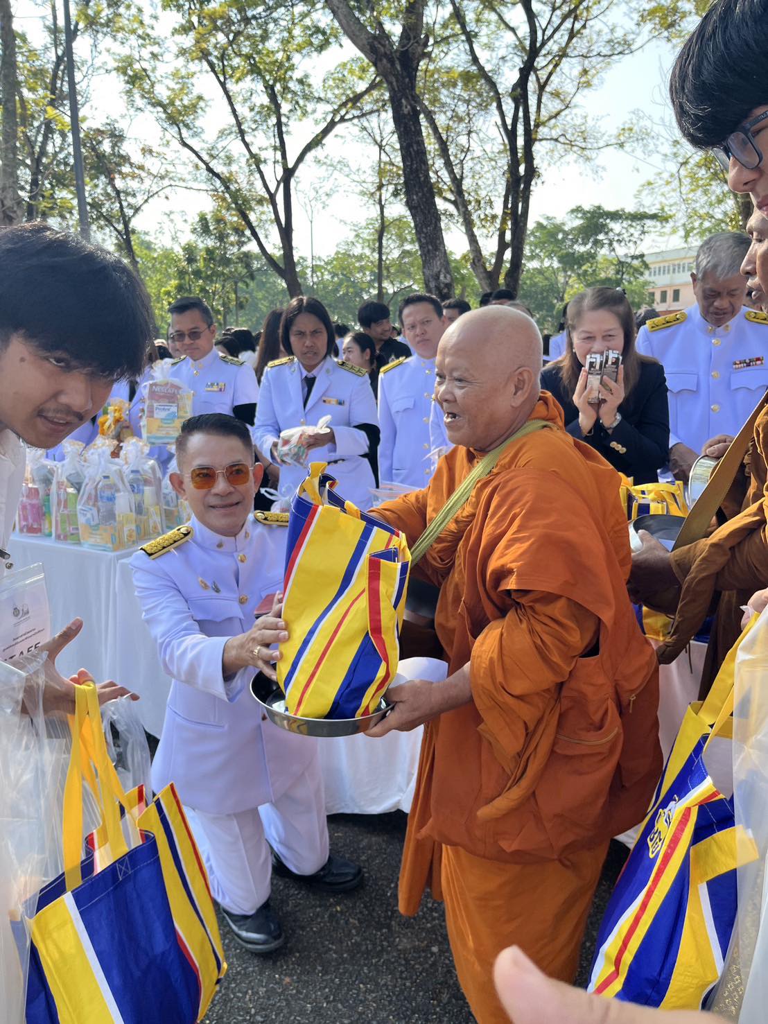 ภายในพิธีมีการทำบุญตักบาตรแด่พระสงฆ์ จำนวน 34 รูป เพื่อความเป็นสิริมงคลแก่ผู้เข้าร่วมพิธีและความเจริญรุ่งเรืองของมหาวิทยาลัย โดยบรรยากาศเป็นไปอย่างเรียบง่าย อบอุ่น และเปี่ยมด้วยความศรัทธา