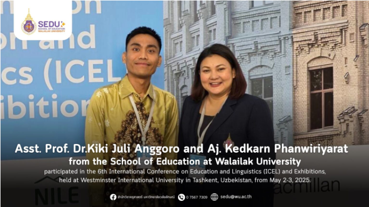 ที่ได้เข้าร่วมนำเสนอผลงานวิชาการในการประชุมวิชาการนานาชาติด้านการศึกษาและภาษาศาสตร์ ครั้งที่ 6 (The 6th International Conference on Education and Linguistics: ICEL 2025) วันที่ 2–3 พฤษภาคม 2568 ณ Westminster International University in Tashkent สาธารณรัฐอุซเบกิสถาน การมีส่วนร่วมในเวทีวิชาการระดับนานาชาติครั้งนี้สะท้อนถึงความมุ่งมั่นในการพัฒนางานวิจัย และการสร้างเครือข่ายความร่วมมือด้านการศึกษาและภาษาศาสตร์ในระดับสากลของคณาจารย์คณะศึกษาศาสตร์อย่างต่อเนื่อง